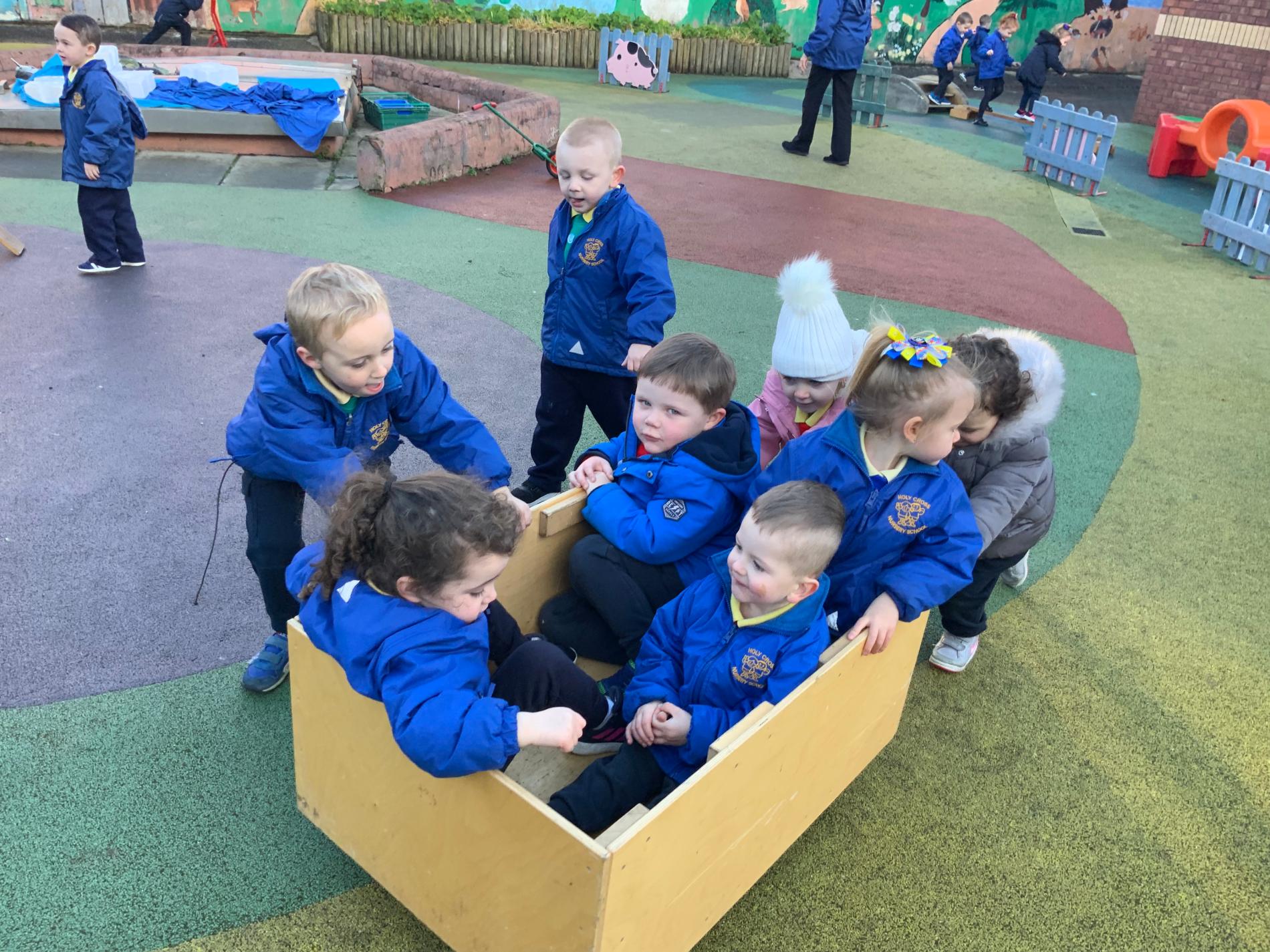The nursery has recently undergone extensive development of a new playground. The creation of our ‘Acorns to Oak Tree Garden’ allows the children to develop their creativity through all areas of the nursery curriculum. Allowing children to develop their natural curiosity about the world around them and scaffolding their learning by providing natural materials to explore is an intergral part of the learning that takes place in Holy Cross Nursery. Children playing and learning in an outdoor environment appear more active, absorbed, motivated and purposeful, and develop a more positive attitude to learning.