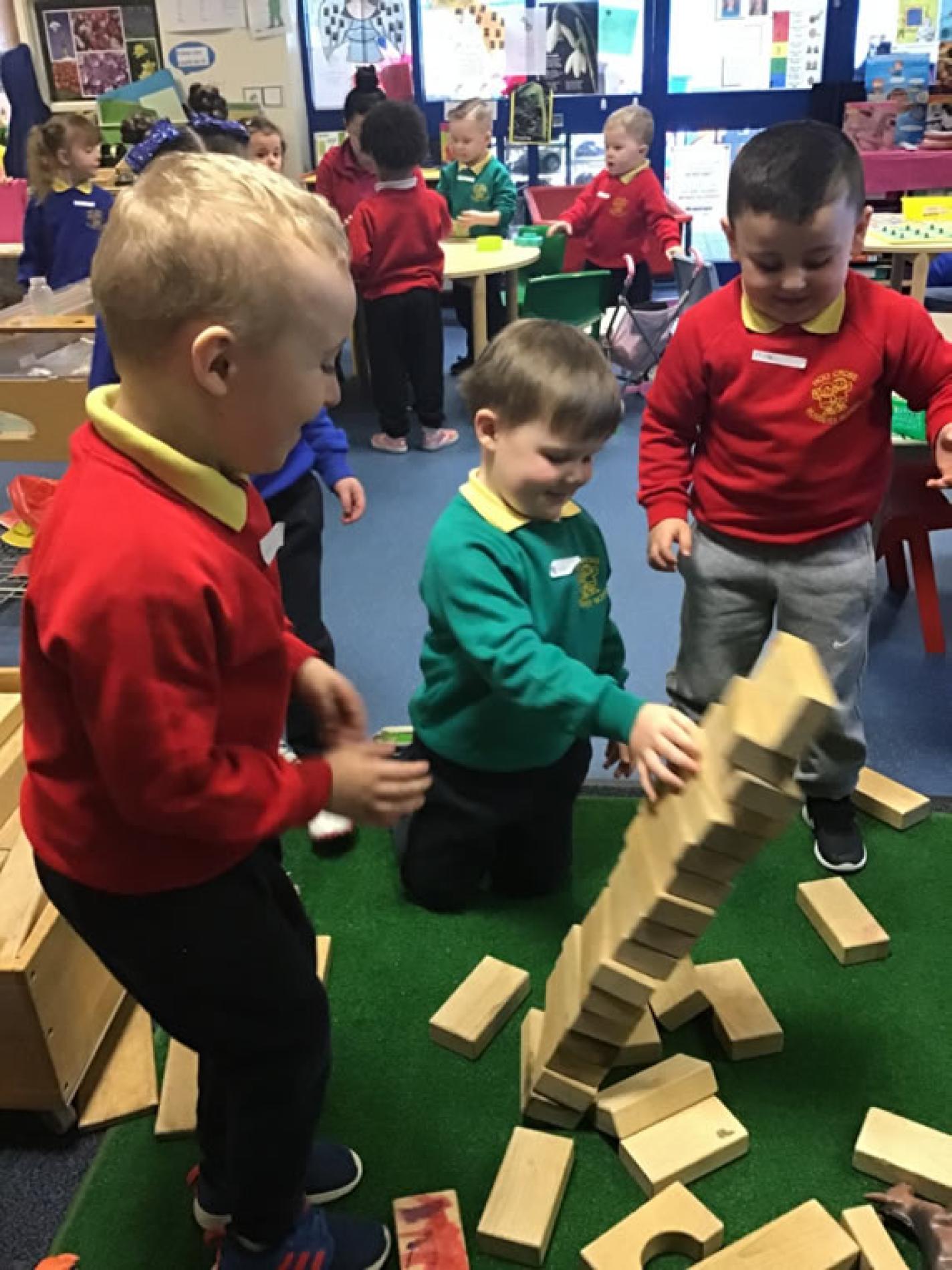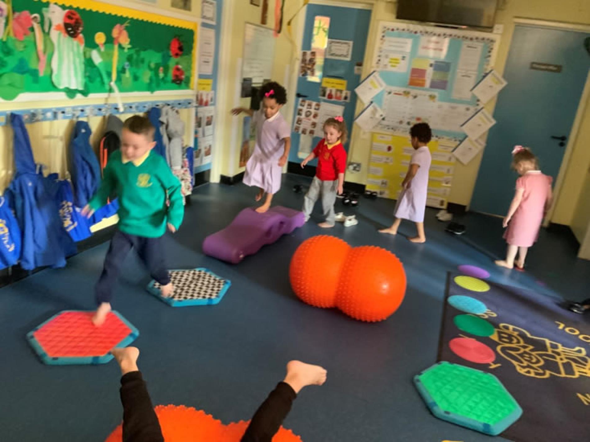 Physical development focuses on children’s gross and fine motor skills. Examples of gross motor skills are running, jumping, climbing, skipping, hopping, kicking and throwing. These skills help develop balance, control, co-ordination and an awareness of size, space and direction. Outdoor play can provide space and freedom to develop these skills. Fine motor skills such as grasping, screwing, pinching, picking, cutting and threading are important for the development of hand and eye co-ordination.