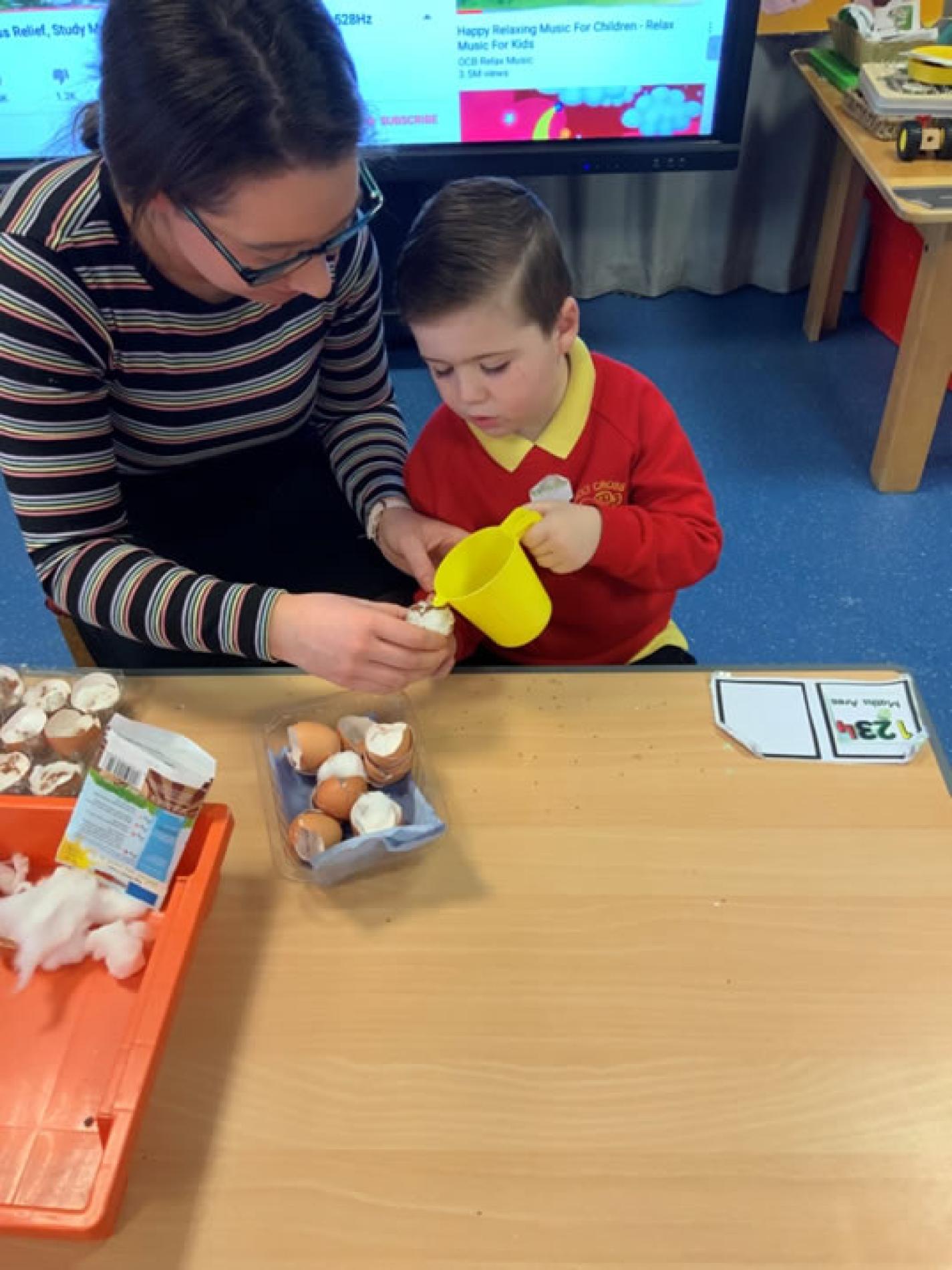 Children are naturally curious about their environment and the world around them. Through a wide variety of activities and experiences in play, children begin to develop a range of skills and concepts such as observation and experimentation. They begin to use their senses to explore their immediate indoor and outdoor environment. In Holy Cross we give particular focus to the school surroundings and explore the environment with frequent walks around the neighbourhood and the nearby park in the Waterworks. We also endeavour to take the children on trips such as the farm, zoo and beach.